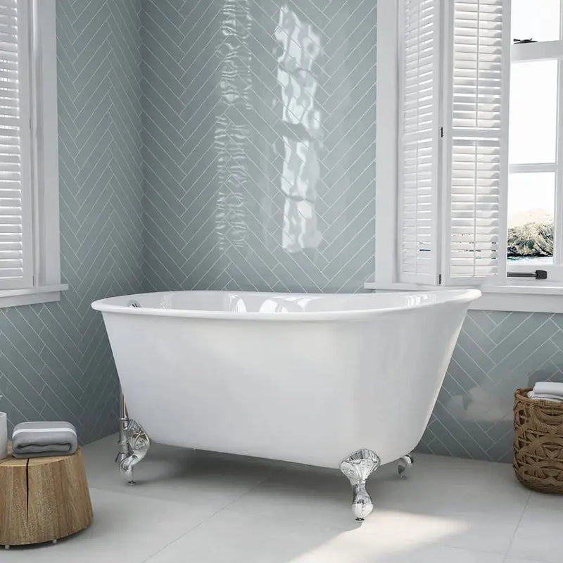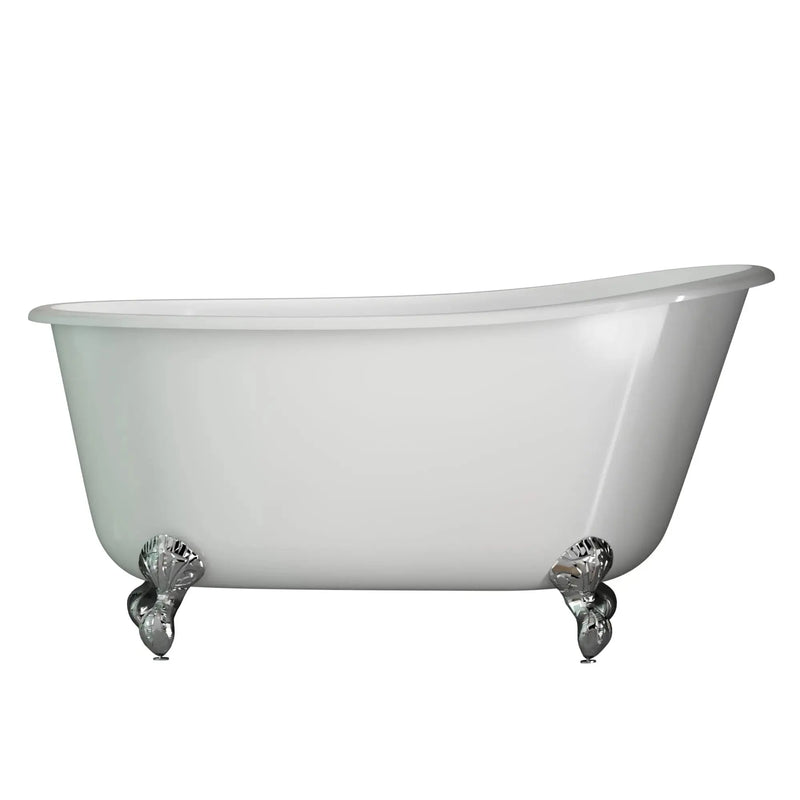 One of the most fashionable cast iron clawfoot tubs is this perfect soaking tub for those who love to venture out into deeper waters. This 58" slipper tub offers the ideal soaking experience boasting 17" of water depth. Comes ONLY with no faucet drillings.